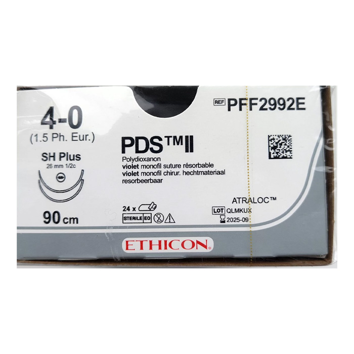 При хирургических вмешательствах используют стерильные синтетические шовные материалы. Монофиламентное рассасывающееся волокно антигенно, апирогенно, изготавливается из полиэфира полидиоксанона (ПДС). В состав также входит триклозан – антисептический агент. Нить надежно соединена с двумя колющими иглами ½ круга длиной 26 мм из высокопрочного нержавеющего стального сплава. Кончик острия уплощен, игольное тело покрыто силиконом для удобного прохождения сквозь ткани и имеет специальные насечки для стабильного удержания в иглодержателе. Для полного рассасывания необходимо 6–7 месяцев.