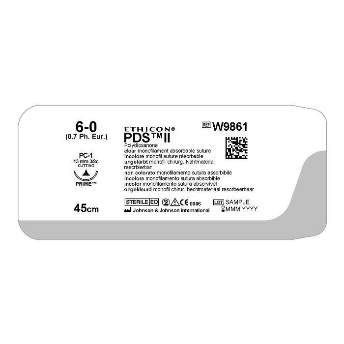 Ethicon PDS II (6/0. 45 см. н/окр. Прайм реж. 13 мм. 3/8) — это высококачественный хирургический шовный материал, изготовленный из синтетического полиэфира поли-п-диоксанона. Нить предусматривает высокую степень рассасывания, надежность, прочность, что делает ее предпочтительным выбором в хирургических манипуляциях.