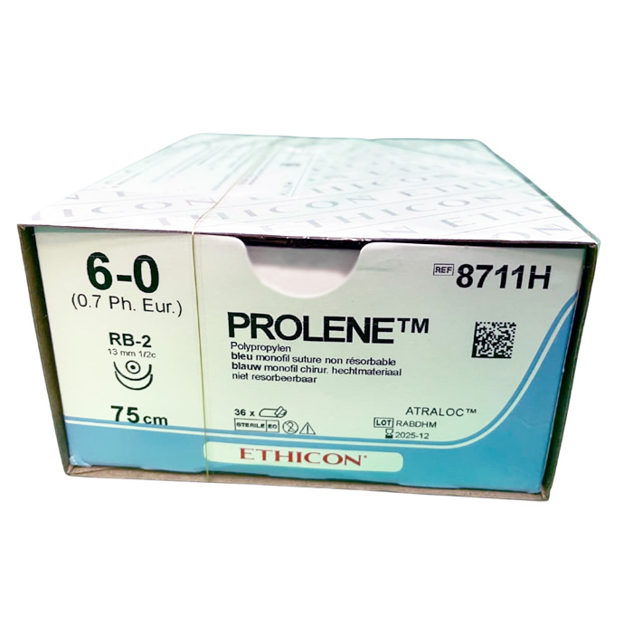 Шовный материал ПРОЛЕН 6/0, 75 см – это медицинский материал, который используется в хирургии для сшивания тканей.