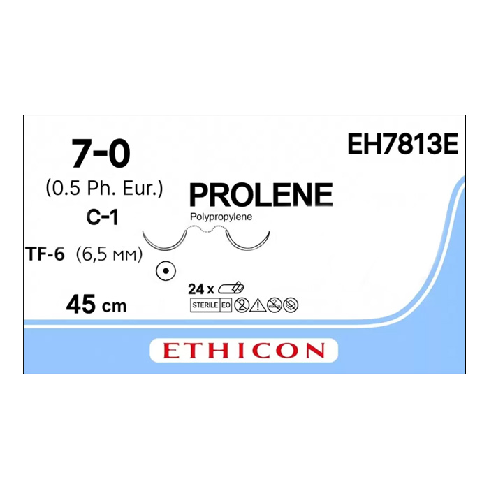 Шовный материал ПРОЛЕН 7/0, 45 см, синий Кол. 6.5 мм х 2, 1/2 Ethicon