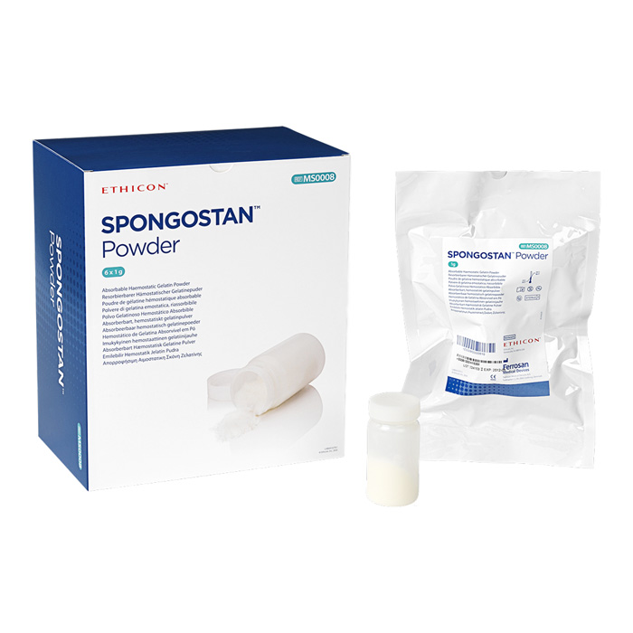 Шовный материал СПОНГОСТАН 1 г Ethicon — это средство для быстрой остановки кровотечений. Гемостатический порошок изготовлен из свиного желатина.