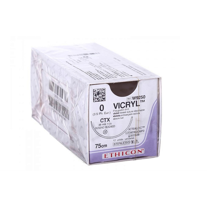ВИКРИЛ 0 - это высококачественный синтетический шовный материал, который полностью рассасывается в организме. Он состоит из сополимера, включающего 90% гликолида и 10% L-лактида, что обеспечивает прочность и надежность шва. Нить покрыта смесью полиглактина 370 и стеарата кальция. Это снижает реакцию тканей и облегчает завязывание узлов.
