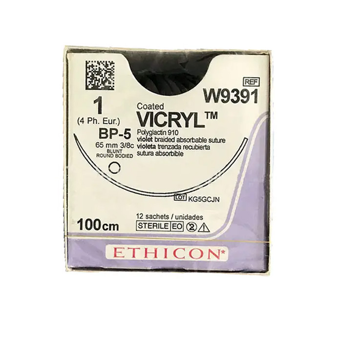 Шовный материал ВИКРИЛ 1. 100 см фиолетовый Кол.тупоконеч. 65 мм. 3/8 Ethicon