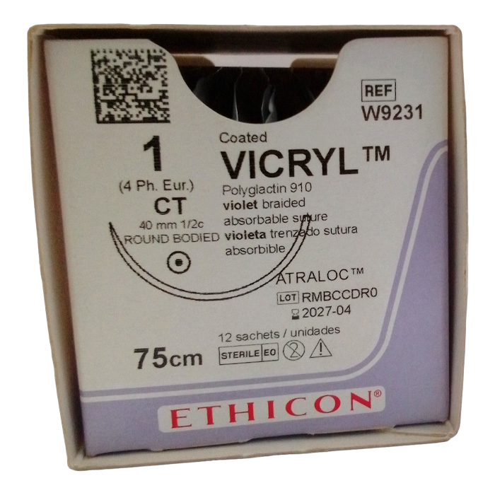 Шовный материал ВИКРИЛ 1.75 см фиолетового цвета с количеством массы 40 мм производства компании Ethicon представляет собой нити, используемые для соединения тканей во время операций.