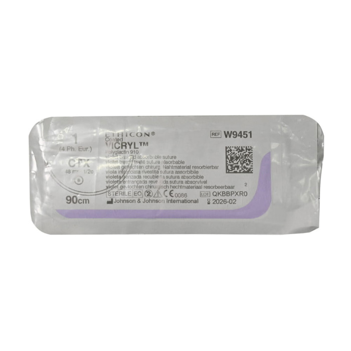 Шовный материал ВИКРИЛ 1. 90 см фиолетовый Кол. масс. 48 мм. 1/2 Ethicon