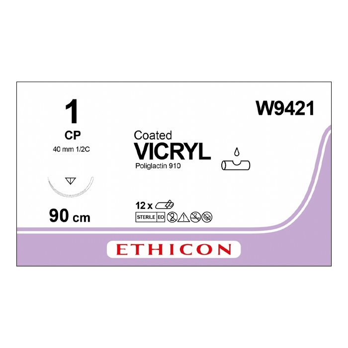Шовный материал ВИКРИЛ 1. 90 см фиолетовый Обратно-реж. 40 мм. 1/2 Ethicon