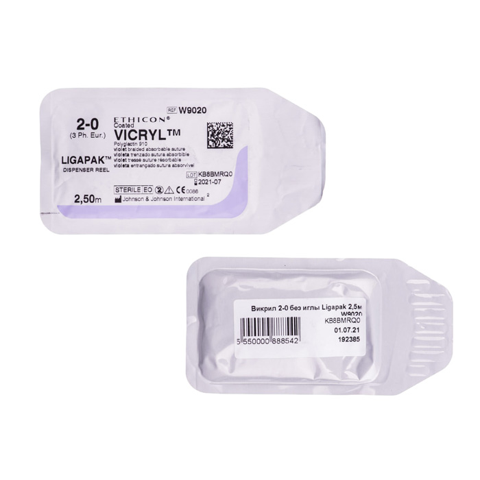 Для соединения тканей при хирургических операциях врачи используют специальный шовный материал. Стерильные синтетические нити ВИКРИЛ рассасываются через 56–85 суток. В состав полимера входит гликолид (90%) и L-лактид (10%). Полифиламентное волокно покрыто специальным составом из полиглактинов (910 и 370) и стеарата кальция. За счет покрытия при сшивании ран и разрезов травматизм снижается до минимума, а завязка узлов становится легче.