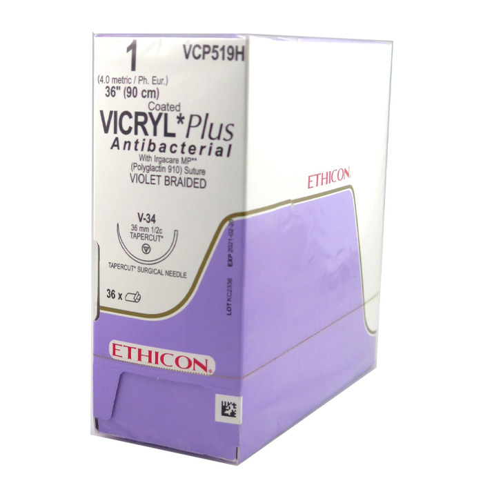 Шовный материал ВИКРИЛ ПЛЮС 1 90 см. фиолетовый Кол.-реж. 36 мм. 1/2 Ethicon
