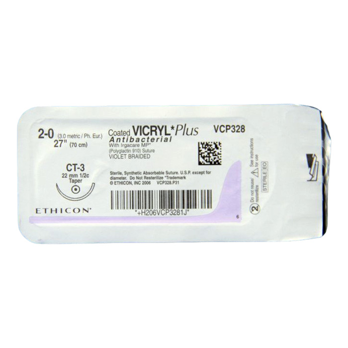 Шовный материал ВИКРИЛ ПЛЮС 2/0 70 см. фиолетовый Кол. 22 мм. 1/2 Ethicon