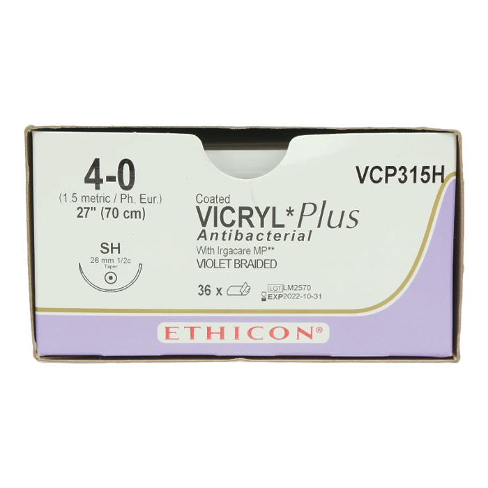 Шовный материал ВИКРИЛ ПЛЮС 4/0 70 см. фиолетовый Кол. 26 мм. 1/2 Ethicon