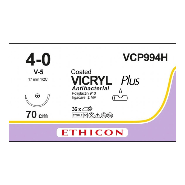 Шовный материал ВИКРИЛ ПЛЮС 4/0 70 см. фиолетовый Кол.-реж. 17 мм. 1/2 Ethicon