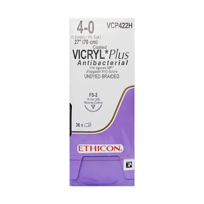 Шовный материал ВИКРИЛ ПЛЮС 4/0 70 см. не окрашен Обр.-реж. 19 мм. 3/8 Ethicon