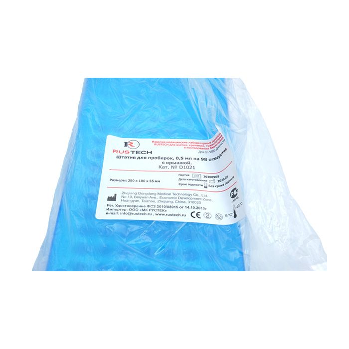 Штатив пластиковый для пробирок на 0,5 мл, 98 отверстий, с крышкой, ПП