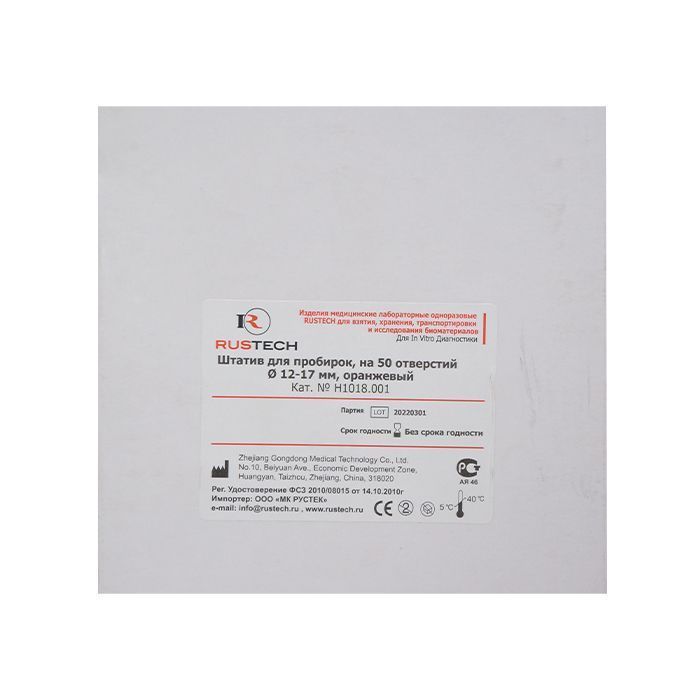 Штатив пластиковый на 50 отверстий для пробирок D 10-18 мм, оранжевый, АБС-пластик