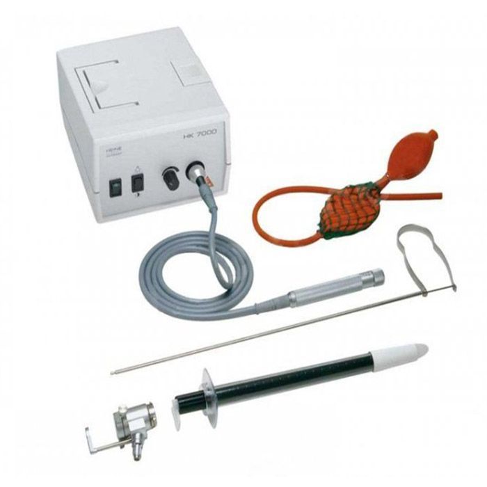 Набор инструментов для проктологического осмотра с инструментальной рукояткой, прямым источником освещения и блоком питания. Совместимость: полимерные одноразовые тубы Heine UniSpec (аноскопы, проктоскопы, ректоскопы).