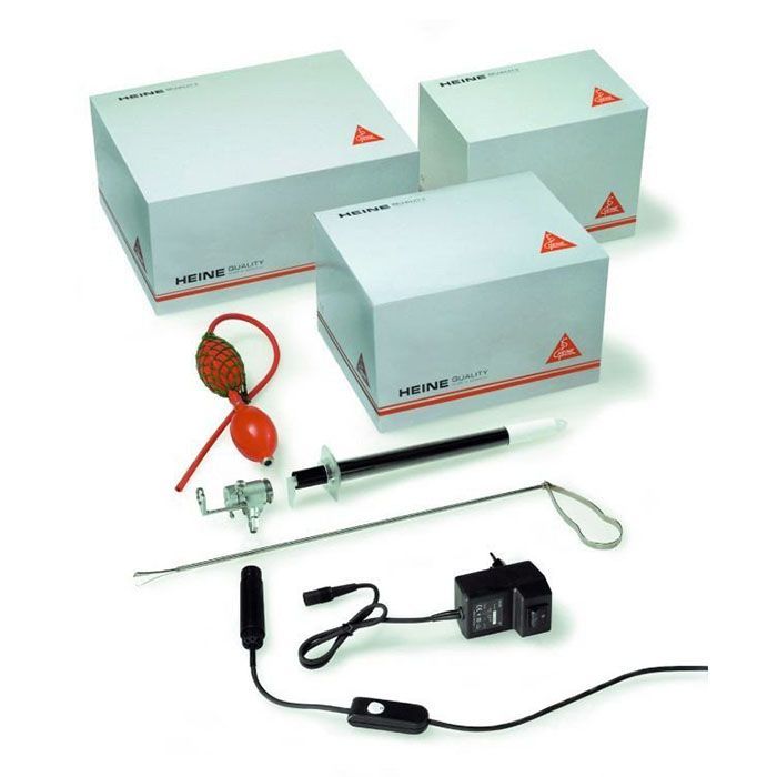 Набор инструментов для проктологического осмотра с инструментальной рукояткой, прямым источником освещения и блоком питания. Совместимость: полимерные одноразовые тубы Heine UniSpec (аноскопы, проктоскопы, ректоскопы).