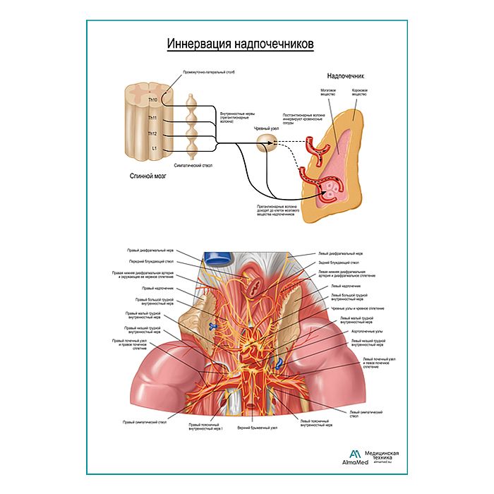 Схема вегетативной иннервации надпочечников плакат глянцевый А1+/А2+