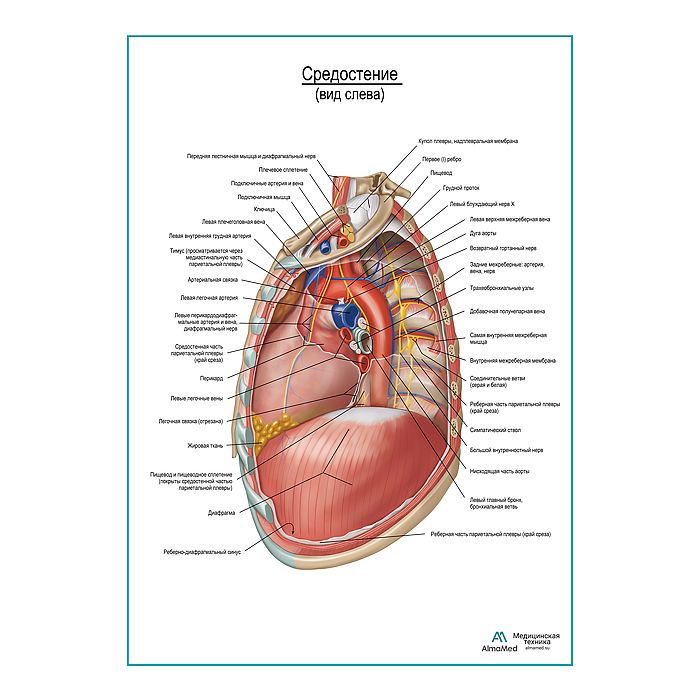 Средостение. Левый боковой вид плакат глянцевый А1+/А2+