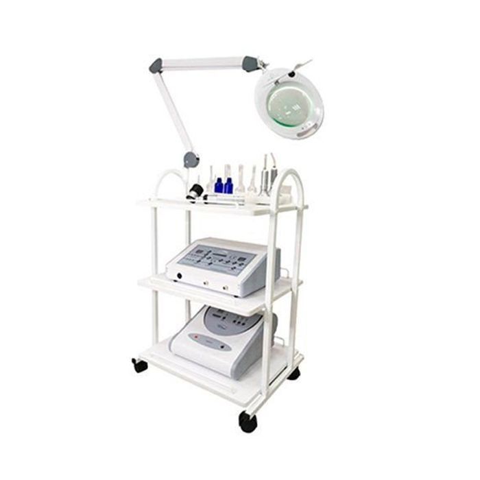 На тележке могут быть размещены аксессуары, инструменты, аппаратная модульная система, косметика и установлены вспомогательные принадлежности, такие как настольные лампы, держатели для манипул, насадок