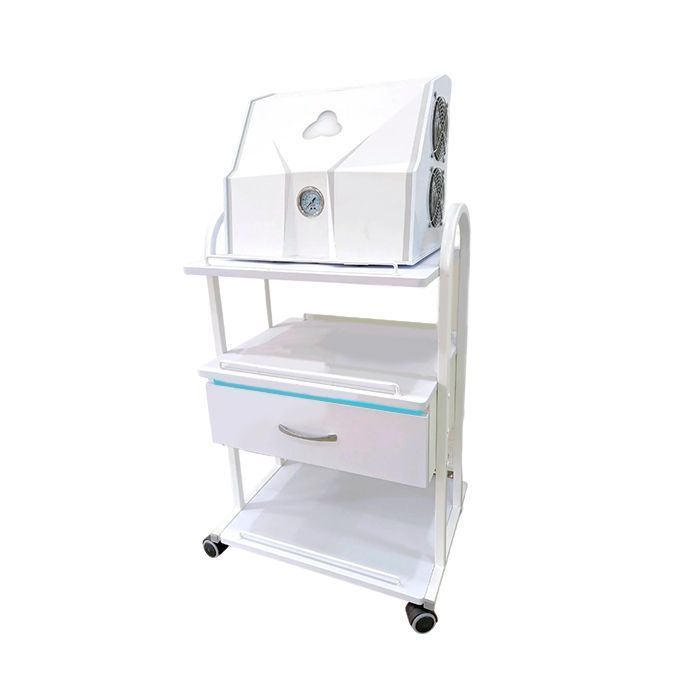 На тележке могут быть размещены аксессуары, инструменты, аппаратная модульная система, косметика и установлены вспомогательные принадлежности, такие как настольные лампы, держатели для манипул, насадок