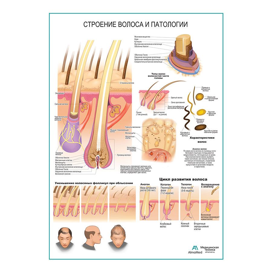 Строение волоса и патологии, плакат глянцевый А1/А2