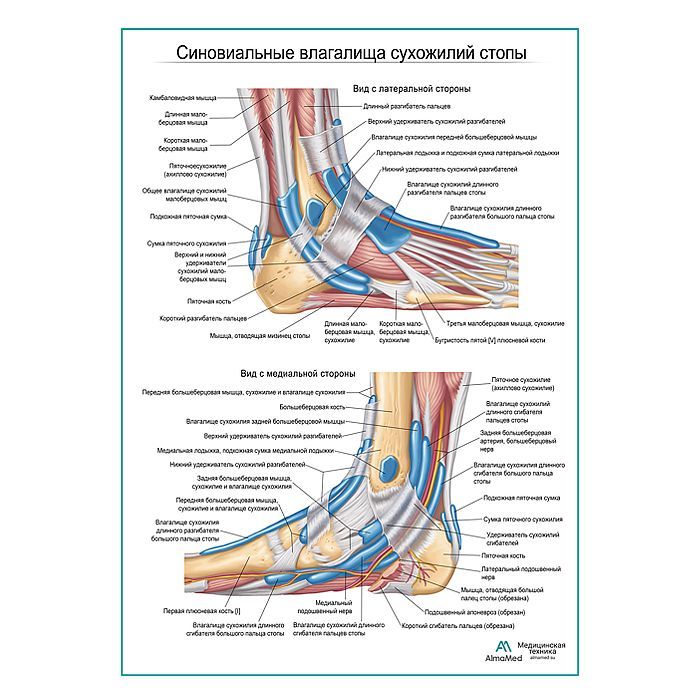 Сухожильные влагалища стопы плакат глянцевый А1+/А2+