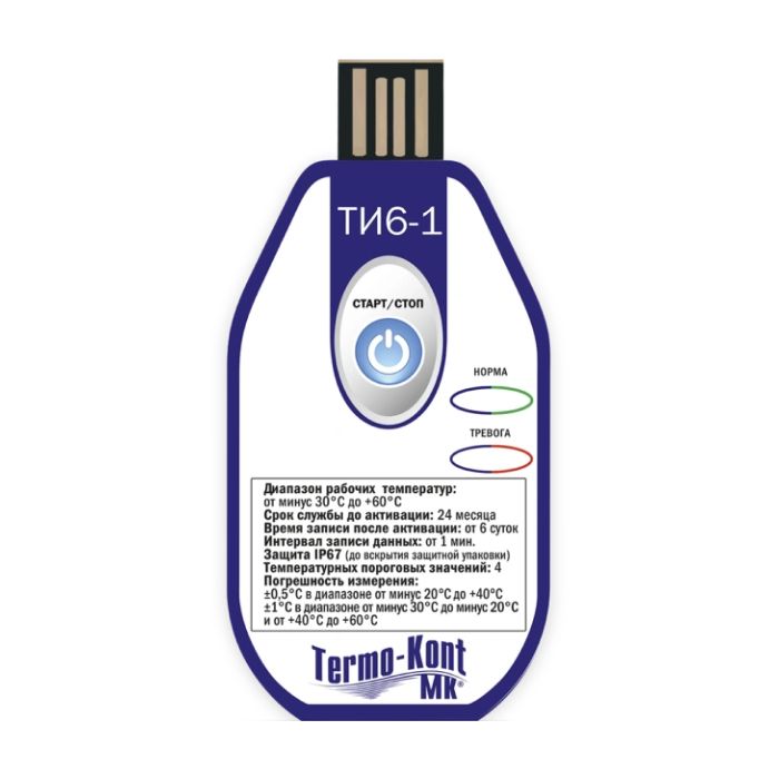 Термоиндикатор одноразовый настраиваемый ТИ6-1 (4-х пороговый, 6 суток)