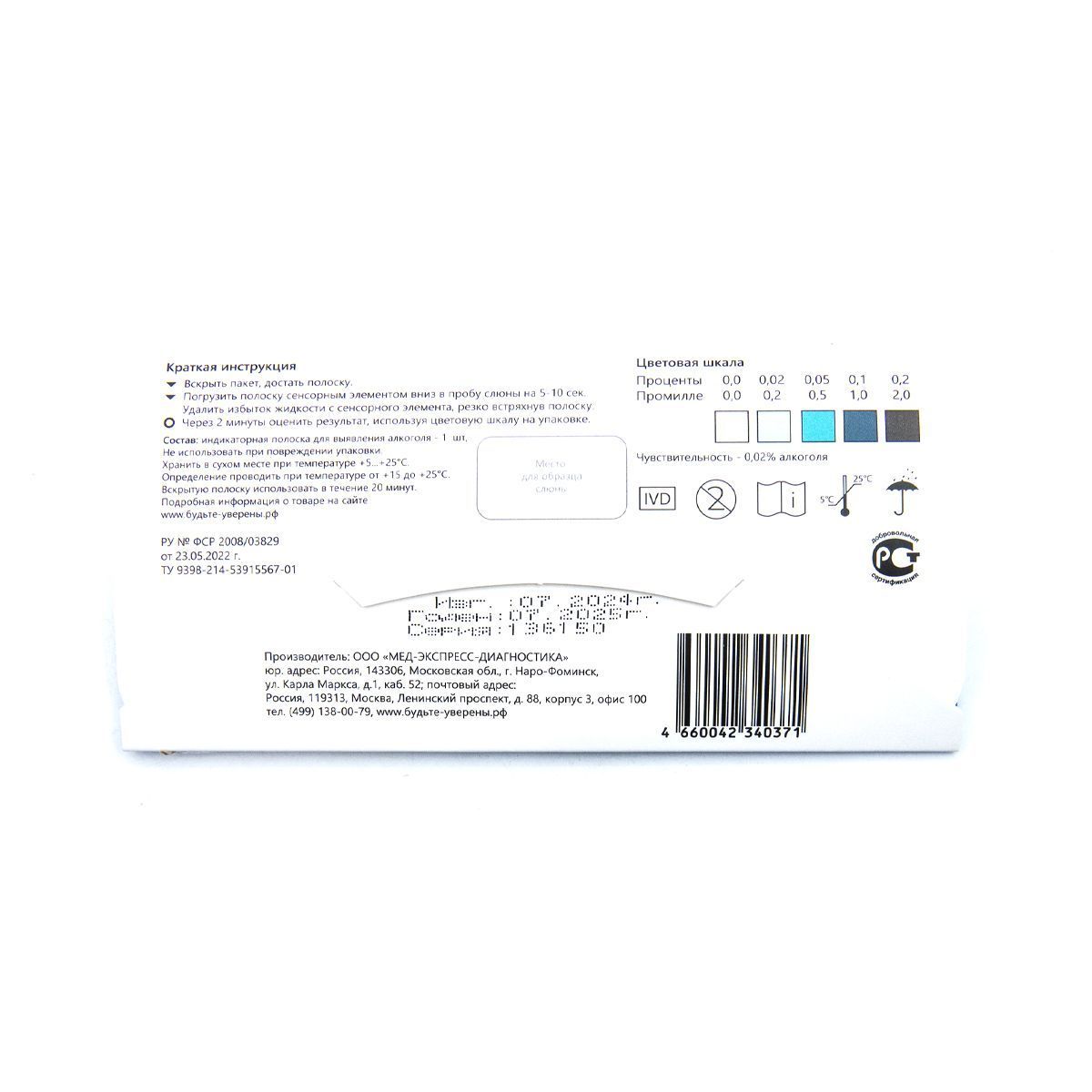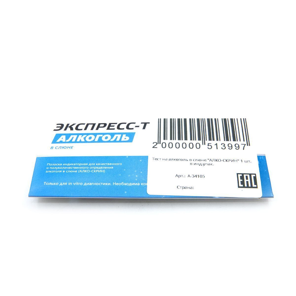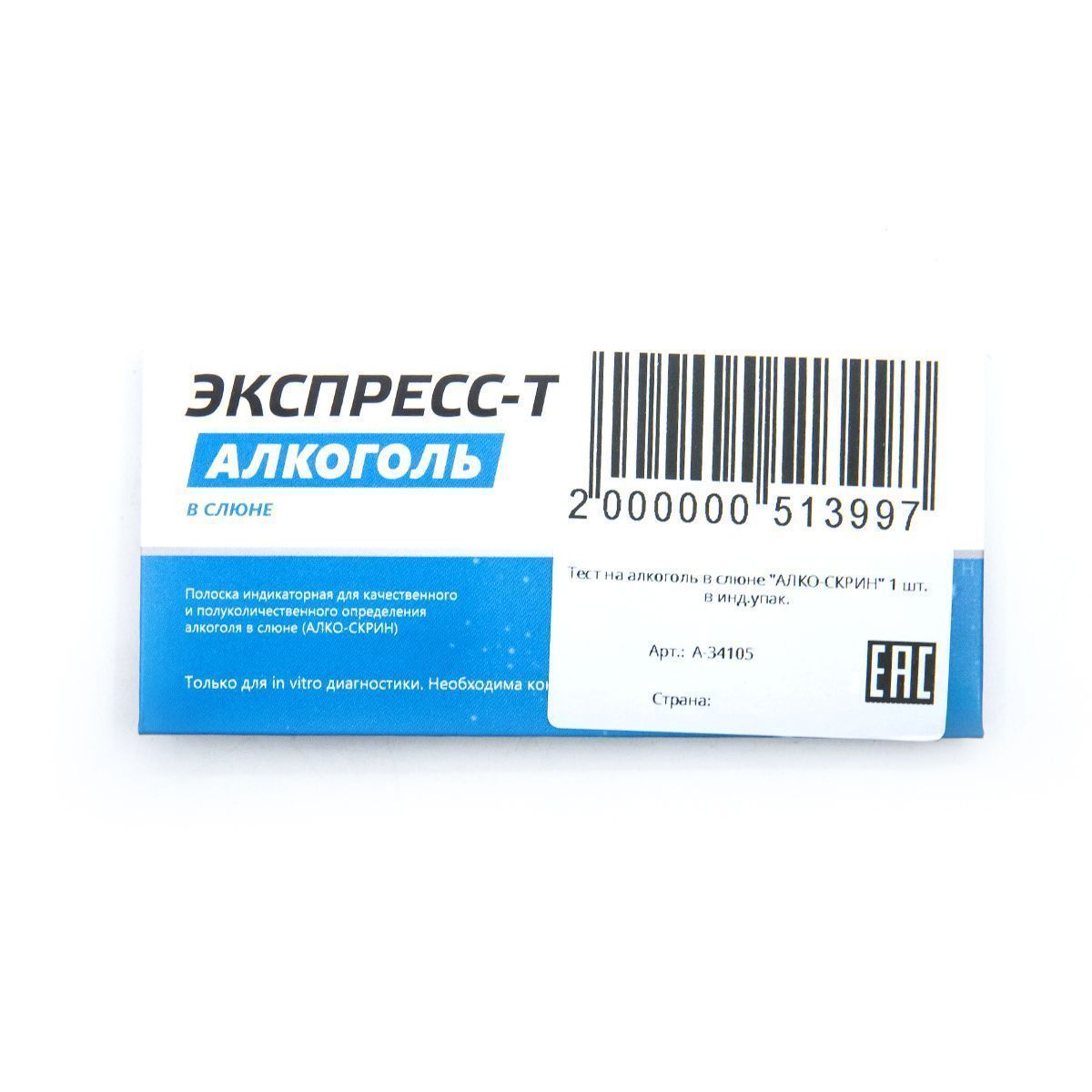 Тест на алкоголь в слюне "АЛКО-СКРИН" 1 шт. в инд.упак.