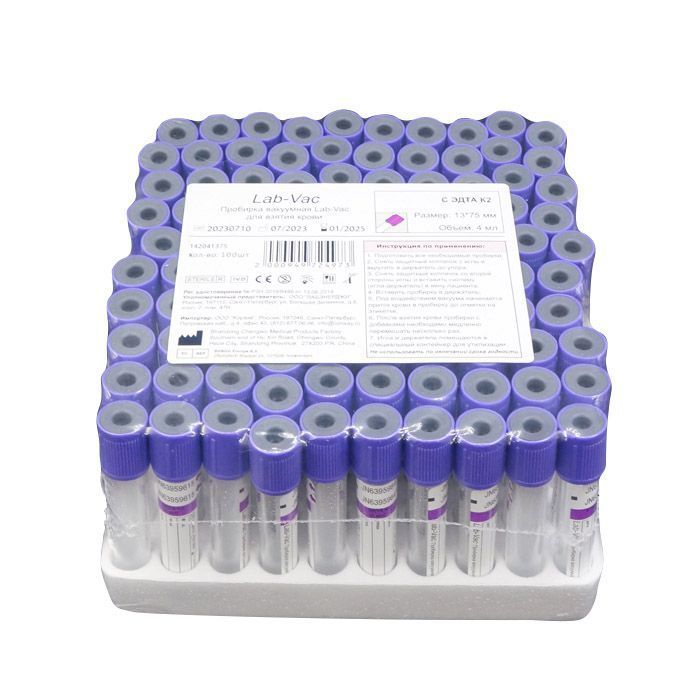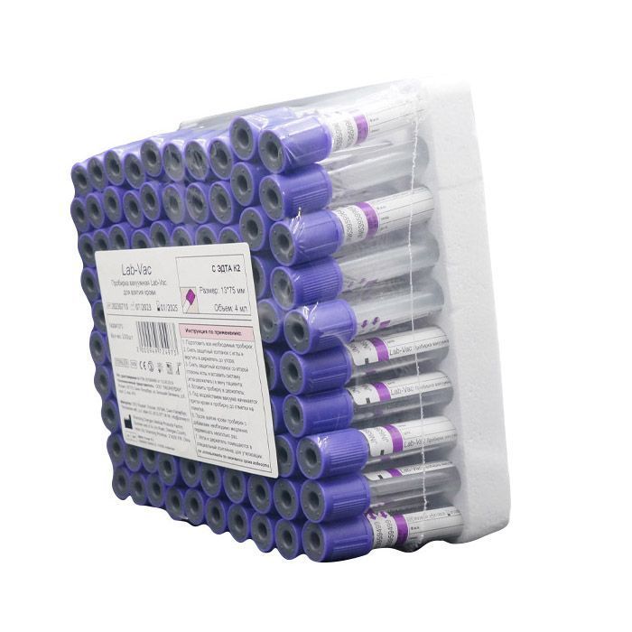 Вакуумные пробирки Lab-Vac с К3 ЭДТА, фиолетовые, 2 мл, 13х75 мм (уп. 100шт) 143021375