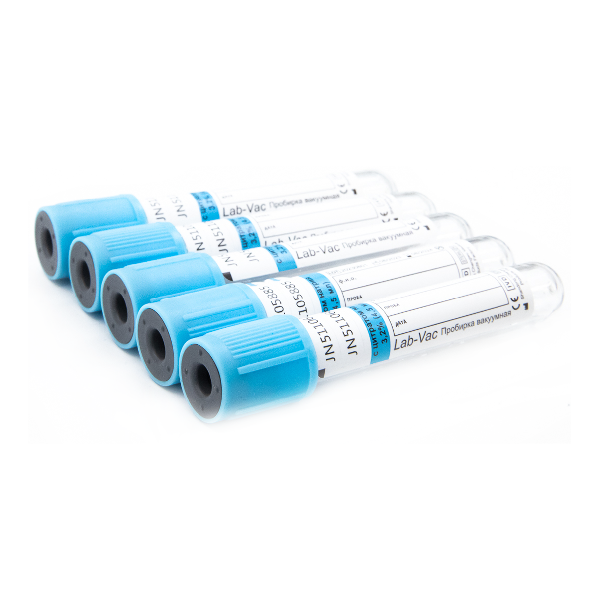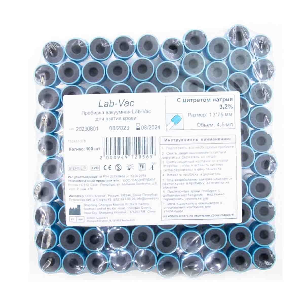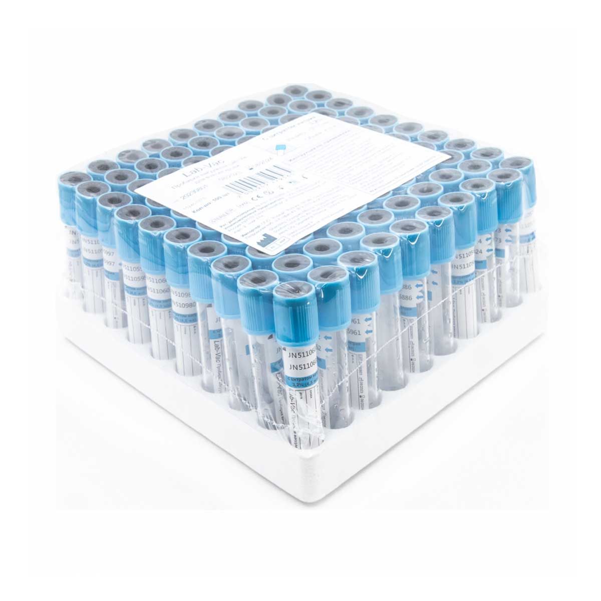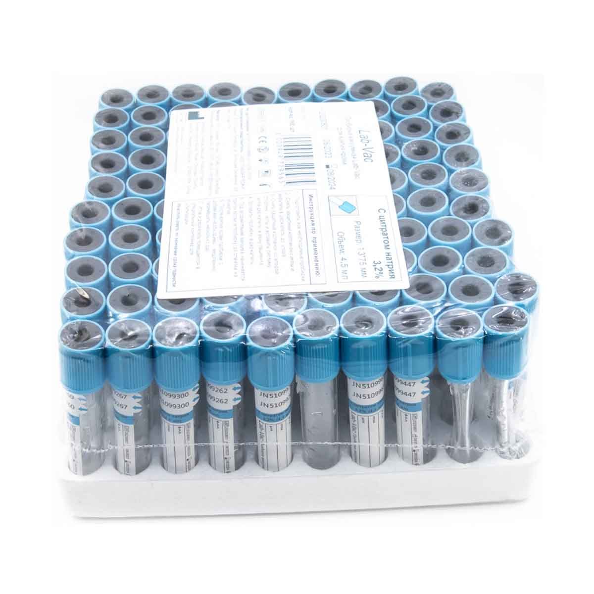 Вакуумные пробирки Lab-Vac с цитратом натрия 3,2%, голубые, 4,5 мл, 13х75 мм (уп. 100шт) 152451375