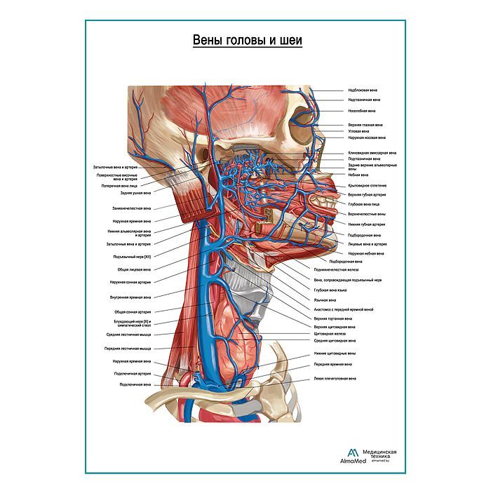 Вены головы и шеи плакат глянцевый А1+/А2+