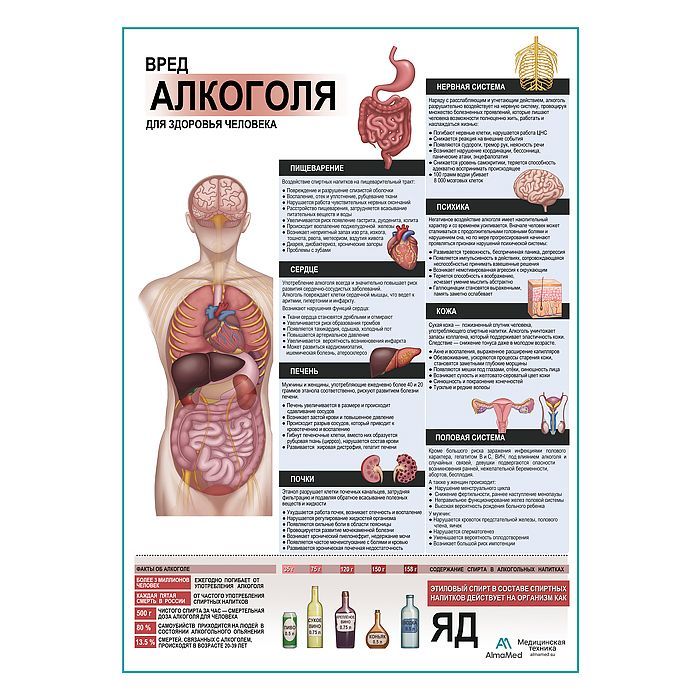 Вред алкоголя для здоровья плакат глянцевый А1+/А2+