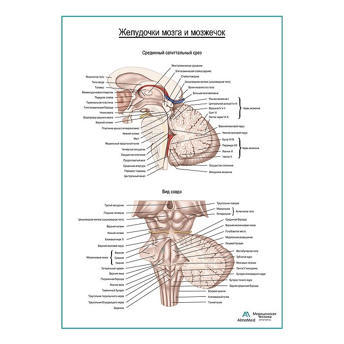 Желудочки мозга и мозжечок плакат глянцевый А1+/А2+