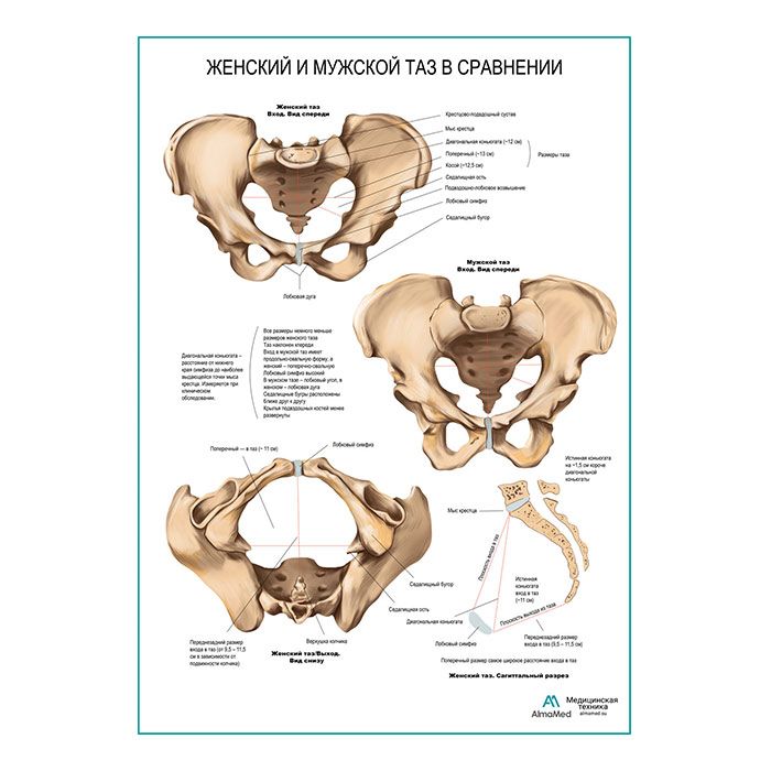 Женский и мужской таз в сравнении плакат глянцевый А1/А2