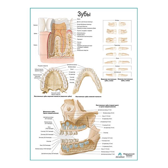 Зуб, строение, расположение плакат глянцевый А1/А2